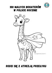 • drukując kolorowanki do przedszkoli. Dla najmłodszych przygotowaliśmy kolorowanki z żyrafami, które symbolizują „Przełyczka” – osobę urodzoną z atrezją przełyku. Dlaczego żyrafa? Ma długą szyję, nawet do 2 metrów długości! Ludzka szyja jest zdecydowanie krótsza, ale w przełyku „Przełyczka” potrafi dziać się wiele… Ważne żeby dobrze pogryźć! Takie i inne informacje znajdziecie właśnie na kolorowankach. Dzięki temu nie tylko najmłodsi, ale i starsi mogą zrozumieć pewne zachowania i spojrzeć na nie z wyrozumiałością. Do pobrania są też kolorowanki o chorobach rzadkich przygotowanych przez Krajowe Forum Orphan: link